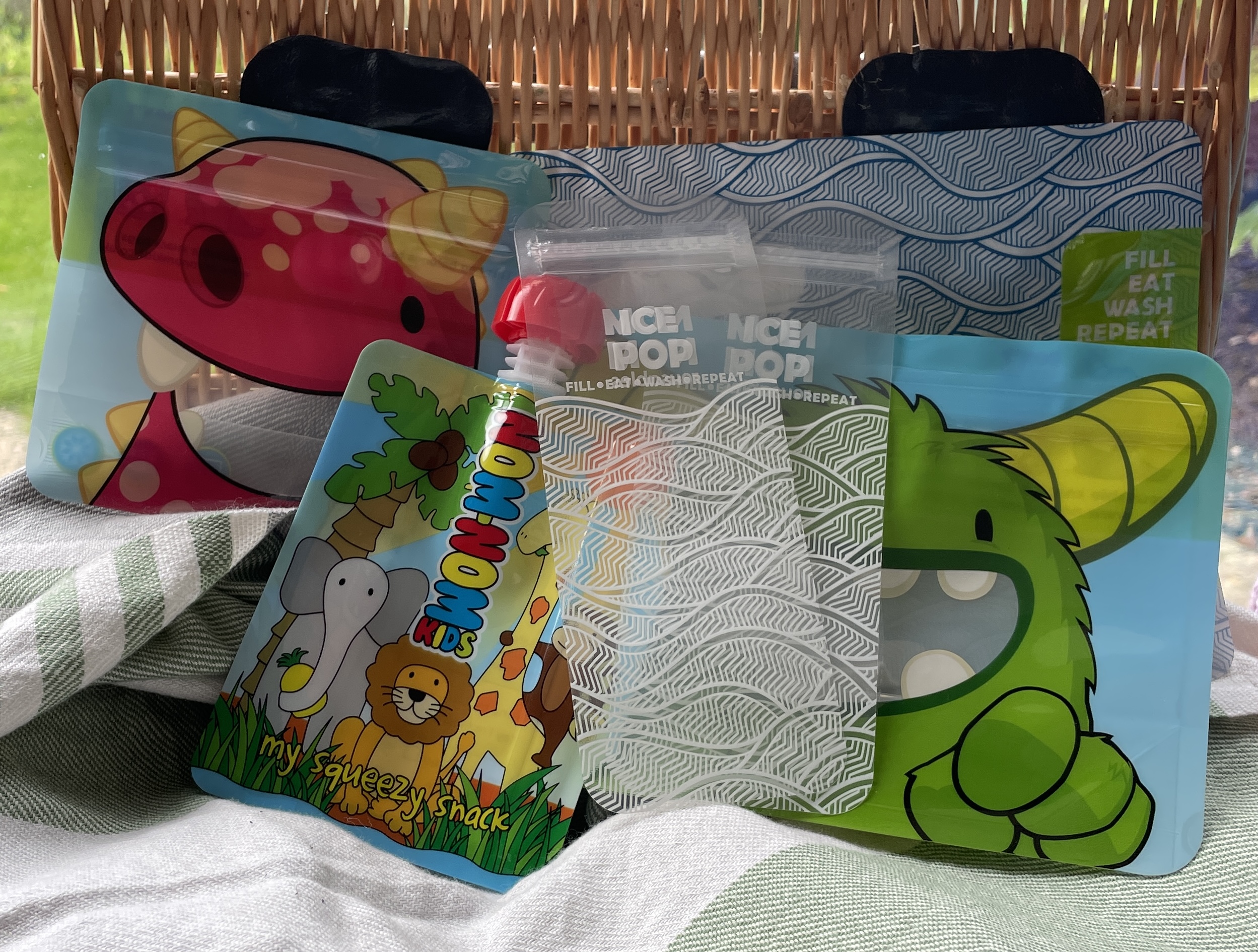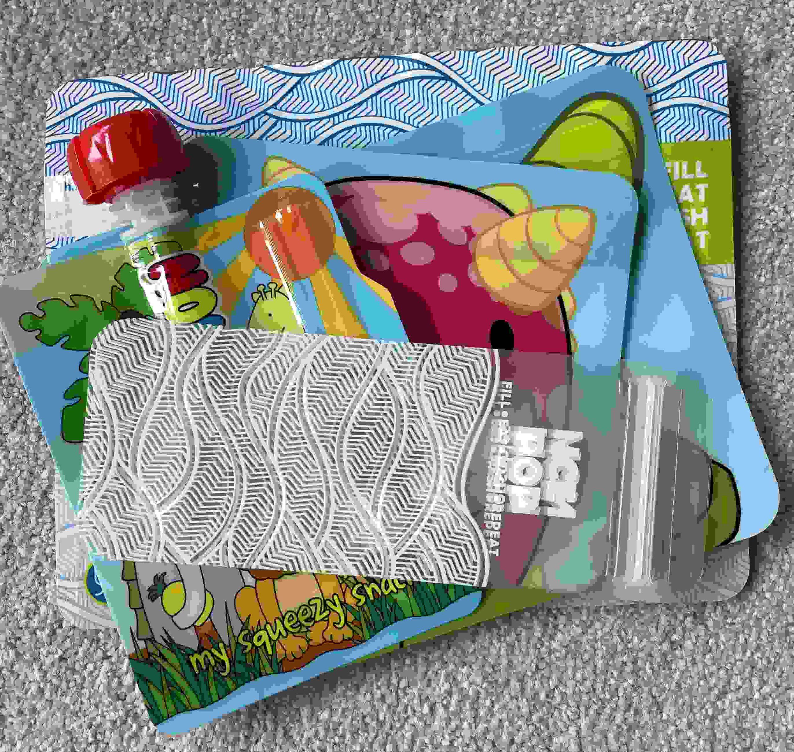 Reusable pouch and snack bag family pack.